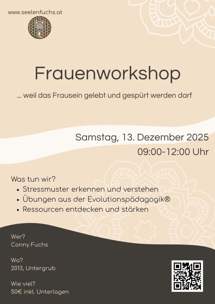 In diesem Workshop schaffst du dir einen Raum, um innezuhalten, Kraft zu tanken und dich neu zu spüren. Mit Impulsen aus der Evolutionspädagogik®, einfachen Körperübungen und kreativem Austausch findest du Zugang zu deinen Stärken und Ressourcen.